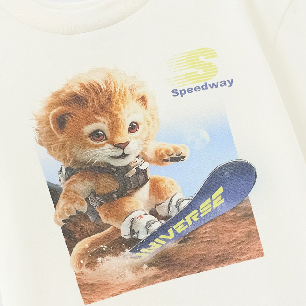 Футболка для маленьких исследователей, которые обожают скорость, ветер и приключения. Мягкий молочный фон и яркий принт с Лео выглядят как живой мульткадр — дети любят такие вещи и носят без уговоров. Лёгкая, дышащая, удобная в движении.