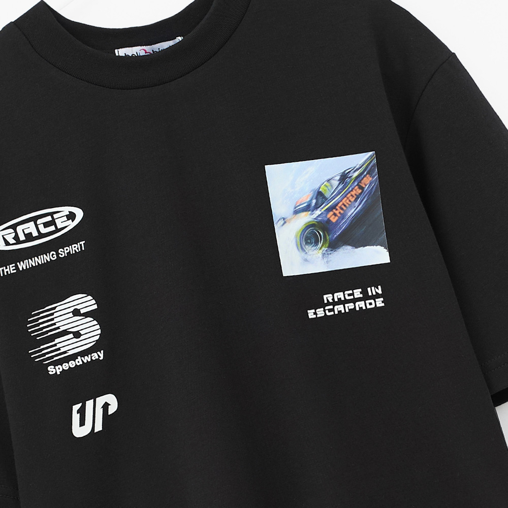 Базовая чёрная футболка с графичными акцентами для мальчиков, которые выбирают свободу и движение. Идеально подходит для повседневного ношения и активных игр. Отлично сочетается с брюками «Фристайл» и джемпером «Выход за рамки».
