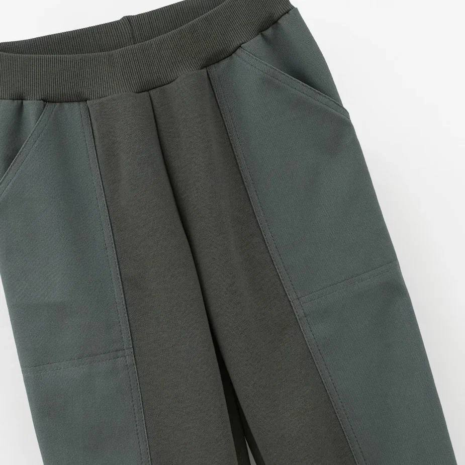 Свободный крой, серо-зелёный оттенок и удобная посадка делают эту модель универсальной для школы, прогулок и активных будней. Мягкий футер отвечает за комфорт, твиловая отделка — за аккуратный внешний вид и долговечность. Легко собирают цельный стрит-лук вместе с худи и футболками капсулы.