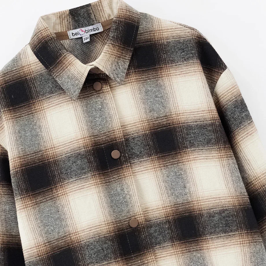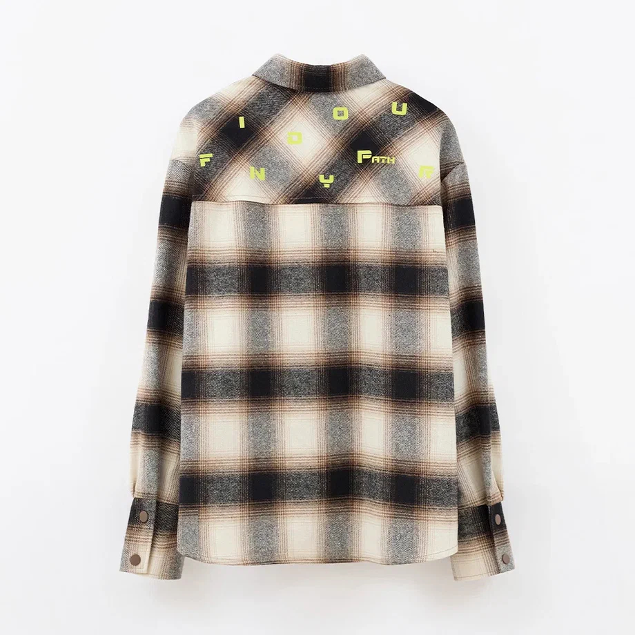 Мягкая и тёплая фланелевая рубашка с модным клетчатым принтом и акцентом на спинке. Отлично подходит для многослойных образов в стиле street casual, легко комбинируется с брюками и джемперами из капсулы
