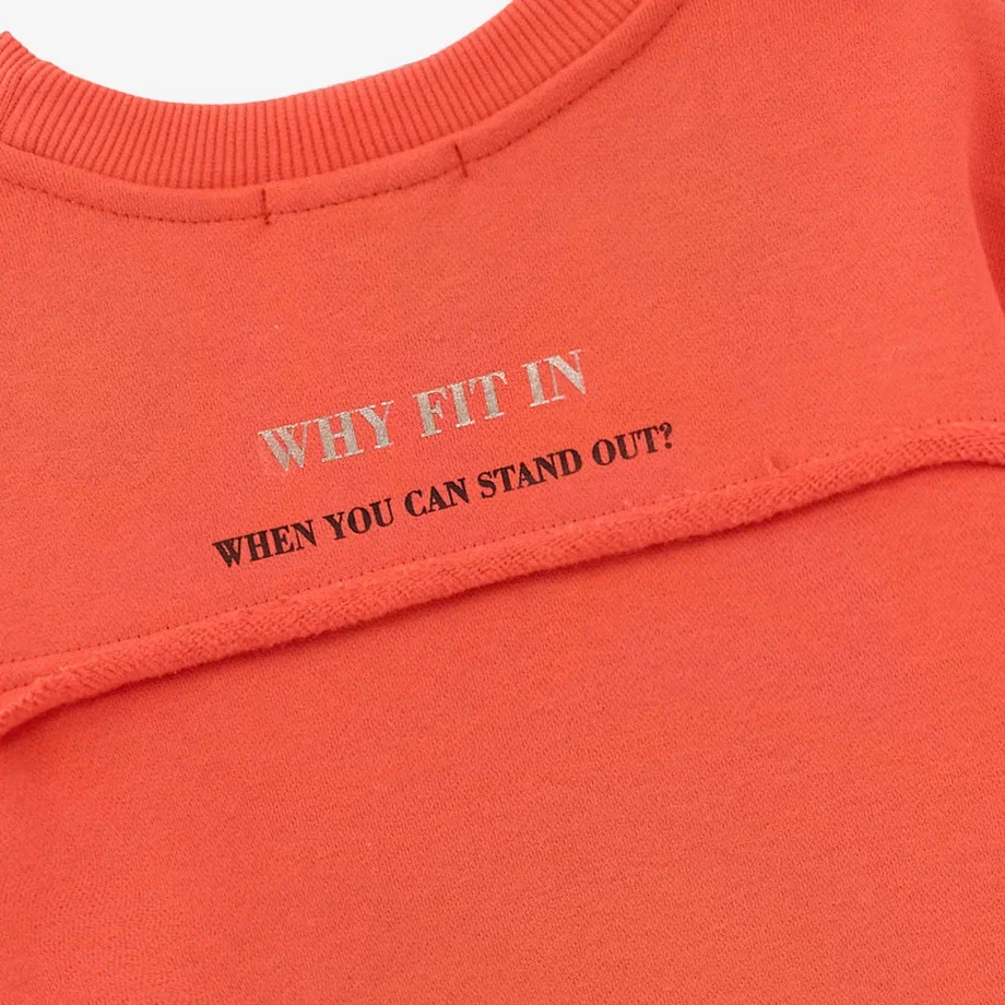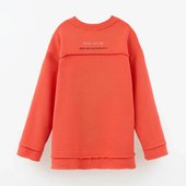Этот джемпер создан для девочек, которые любят быть заметными. Сочный красный цвет, расслабленный силуэт и эффектные «сырые» срезы делают образ дерзким, современным и очень стильным. Мягкий футер сохраняет тепло и комфорт, а свободный крой не сковывает движений — идеально для активного дня в городе, школе или на прогулке.
