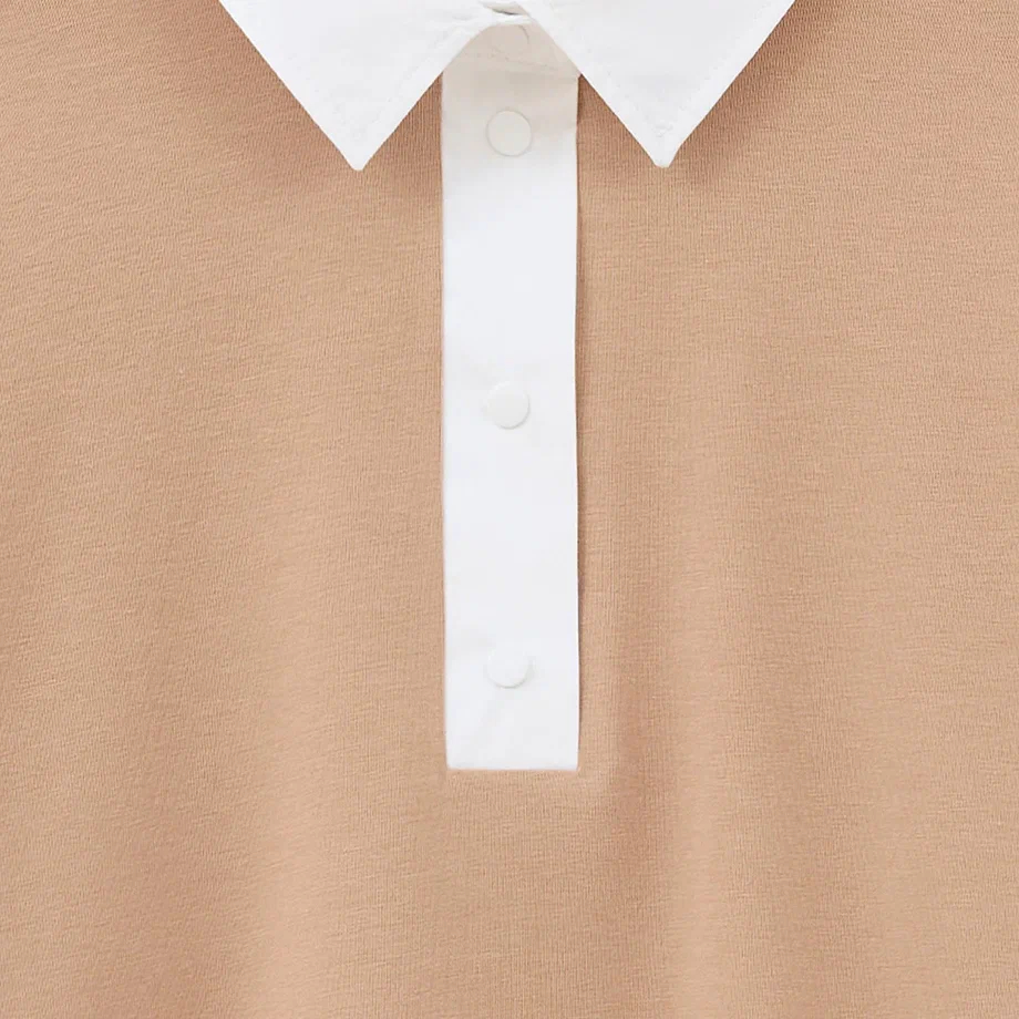 Минимализм, в котором есть характер. Этот джемпер про свободу движений и аккуратный стиль без перегруза. Мягкая кулирная гладь приятно ощущается на теле, а контрастный воротник из поплина добавляет образу собранности и лёгкой классики. Он легко подстраивается под настроение ребёнка — сегодня расслабленный street casual, завтра более аккуратный и продуманный образ.