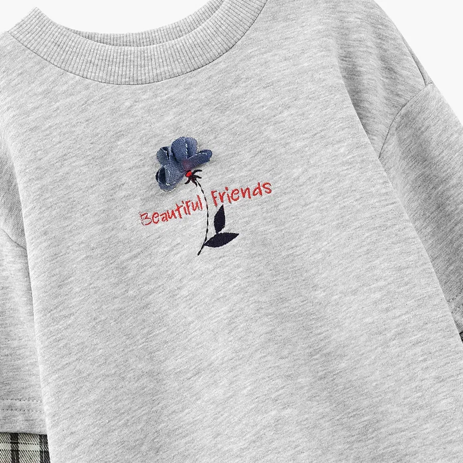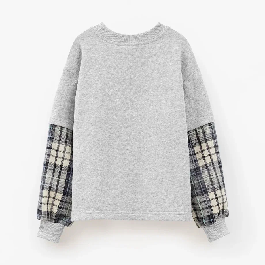 Серый джемпер с мягким футером и контрастными клетчатыми вставками на рукавах создаёт стильный и уютный образ. Идеален для прогулок по парку, активных игр и тёплых вечеров в ритме большого города. Комфортный крой не сковывает движения, а детали добавляют индивидуальности каждому образу.