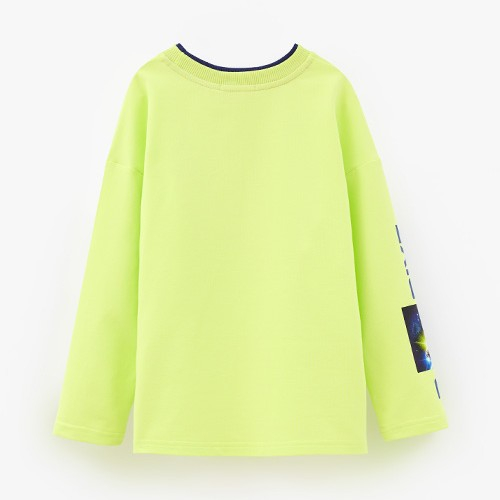 Сочный лаймовый оттенок сразу притягивает взгляд — как сигнал маяка в космосе. Этот джемпер создан для активных мальчишек, которые не сидят на месте и любят, когда одежда подчёркивает характер.