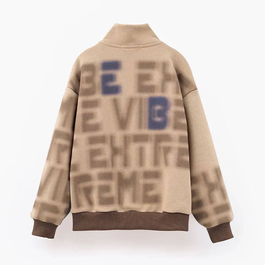 Динамичный жакет для активных мальчишек. Принты с надписями добавляют характер и движение образу, а продуманный крой делает модель удобной на каждый день — для прогулок, школы и активных выходов. Бежевый оттенок легко сочетается с другими вещами капсулы: брюками «Орбита стиля» и джемпером «Космический ритм».