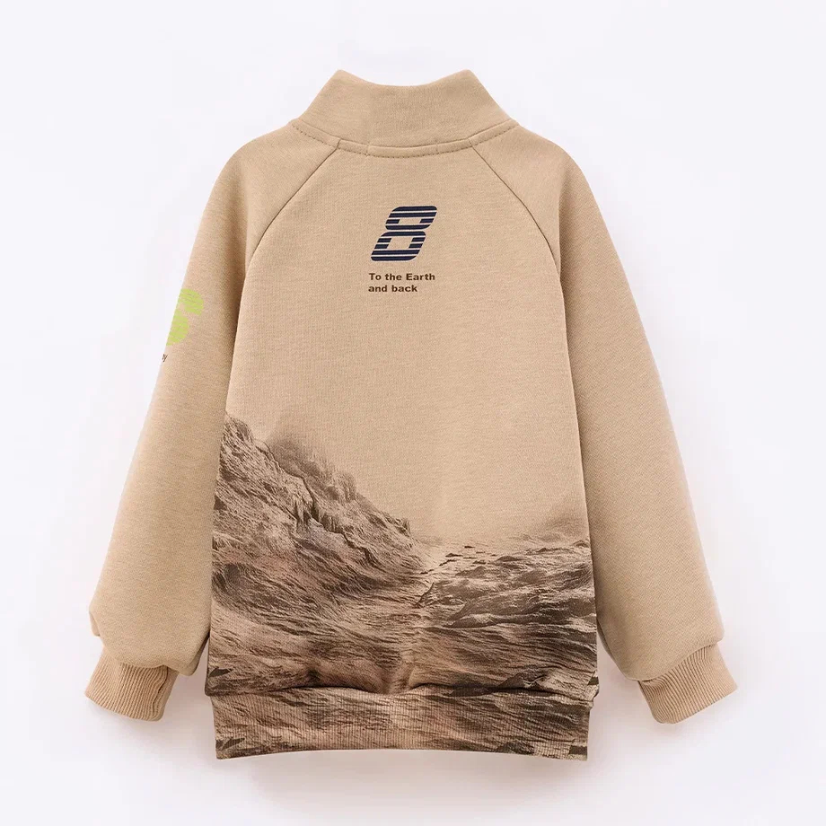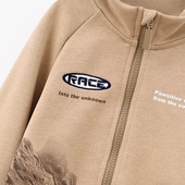 Тёплый жакет из мягкого футера с динамичным принтом, вдохновлённым скоростью и движением. Лаконичный фасон, аккуратная посадка и воротник-стойка делают модель удобной для активных прогулок и насыщенного дня. Образ получается собранным, но живым — без лишней строгости.