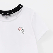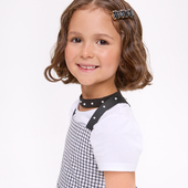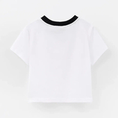 Топ из мягкого хлопка, укороченной посадкой и вырезом с эффектом чокера делают модель акцентной. Лаконичная печать и детали в виде жемчуга добавляют нежность.
