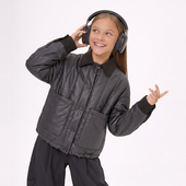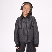 Прямой силуэт с умеренным объёмом выполнен из плащевой ткани с эффектом кожи, внутри — нейлоновая подкладка. Воротник из твила, накладные карманы и кнопки с мягким покрытием. Манжеты можно подвернуть для удобной посадки. Подходит для температуры от +5.