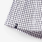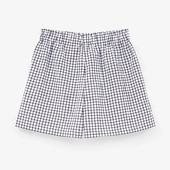 Широкий крой и мягкий пояс с эластичной лентой обеспечивают комфортную посадку. Жатая сорочечная ткань добавляет фактуры, а нашивка из репсовой тесьмы с жемчугом подчёркивает стиль модели.