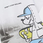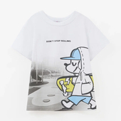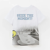 Умеренный свободный крой создаёт расслабленный образ. Короткий рукав и эластичная горловина из рибаны обеспечивают аккуратную посадку. Цифровой принт дополнен термотрансферной плёнкой для яркости и стойкости.