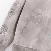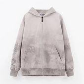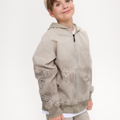 Прямой силуэт из твила и мягкого футера с браш-эффектом дополнен объёмным низом на рибане. Капюшон и карман-кенгуру добавляют удобства, застёжка на молнию упрощает посадку. Модель украшена авторским цифровым принтом.