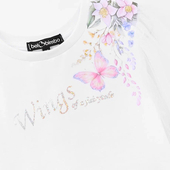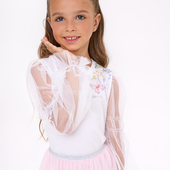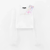 Прилегающий силуэт создаёт аккуратную посадку, воздушные рукава придают эффект лёгкости. Декор в виде цифровой флоральной печати и шрифтовой плёнки подчёркивает индивидуальность.