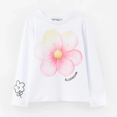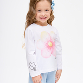Прямой крой обеспечивает комфортную посадку. Рукава со сборкой создают мягкий акцент и добавляют образу лёгкости. Декор из страз в сочетании с цифровой печатью подчёркивает стиль. Эластичная горловина из рибаны аккуратно держит форму.