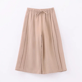 Прямой широкий крой не ограничивает активность, длина до середины икры смотрится аккуратно и практично. Защипы добавляют объёма, а мягкий шнурок в поясе регулирует посадку.