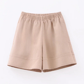 Прямой широкий силуэт и средняя посадка обеспечивают комфорт. Пояс с мягкой эластичной лентой и боковые карманы делают модель удобной для прогулок и активного отдыха.
