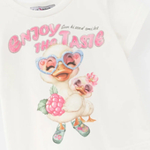 Модель из мягкого хлопка создаёт спокойное, светлое настроение. Прямой крой обеспечивает естественную посадку и комфорт в движении. Авторский цифровой принт дополнен стразами, которые добавляют выразительности.