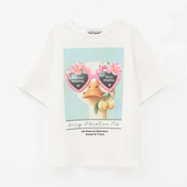 Прямой крой обеспечивает комфорт в движении. Мягкий хлопок приятен к телу. Авторский цифровой принт со стразами добавляет выразительный акцент и подчёркивает характер модели.