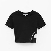 Чёрный кроп-топ выполнен из плотного хлопкового трикотажа, который хорошо держит форму и комфортен в носке. Модель аккуратно прилегает, не сковывая движения. Благодаря лаконичному дизайну топ легко вписывается в разные образы — от повседневных до более нарядных. Небольшой декоративный элемент добавляет характер, не перегружая внешний вид.