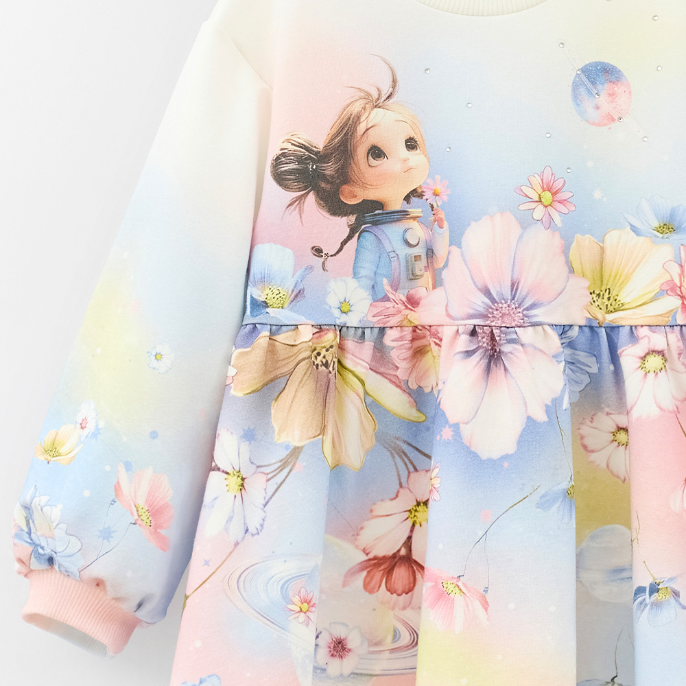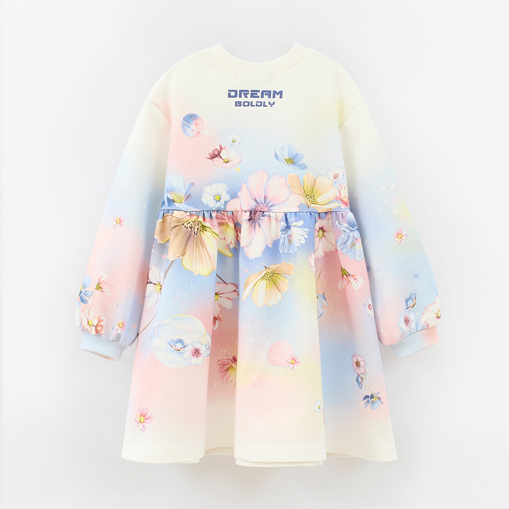 Нежное платье с мягкими пастельными оттенками и лёгким цветочным принтом. Комфортный крой, приятная ткань и пышная юбка создают лёгкий, сказочный образ на каждый день и для особых случаев.