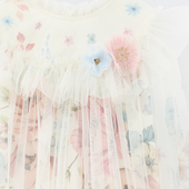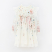 Воздушное платье с хлопковой основой и лёгкой сетчатой отделкой. Создаёт нежный и сказочный образ для самых маленьких модниц — удобно для прогулок, игр и первых праздников.