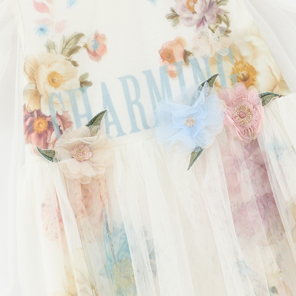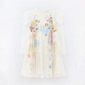 Молочный хлопок и воздушная сеточка создают нежный, сказочный образ. Платье словно оживляет акварельные лепестки и превращает каждый день в маленькую сказку — идеально для праздников, прогулок и фотосессий.