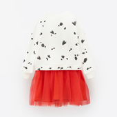 Нежное и игривое платье из мягкого футера с лёгкой сетчатой отделкой. Комфортный крой и яркий дизайн создают лёгкий, озорной образ — идеально для прогулок, игр и комбинирования с другими вещами из капсулы.