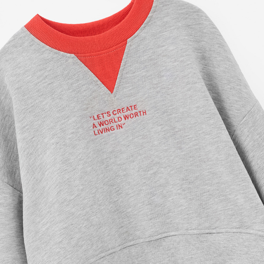 Свободный крой, мягкий футер и стильный серый меланж создают комфортный и динамичный образ для активных девочек. Контрастный красный акцент у горловины добавляет яркости и делает модель идеальной для прогулок, учебы и встреч с друзьями. Легко сочетается с джоггерами или джинсами из капсулы, создавая выразительный street casual стиль.