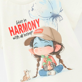 Нежный молочный оттенок и иллюстрация девочки с косичками создают образ, наполненный спокойствием и внутренней гармонией. Футболка легко собирает мягкие повседневные образы и подходит к любому базовому низу. Идеальна для игр, прогулок и уютных семейных дней.