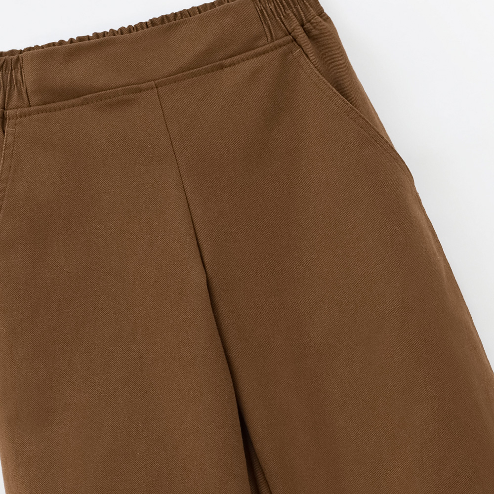 Твил с эластаном обеспечивает свободу движения и комфорт, а стильный коричневый оттенок делает брюки универсальными для разных комплектов. Широкий силуэт легко комбинируется с джемперами и футболками из капсулы для создания современных городских образов.