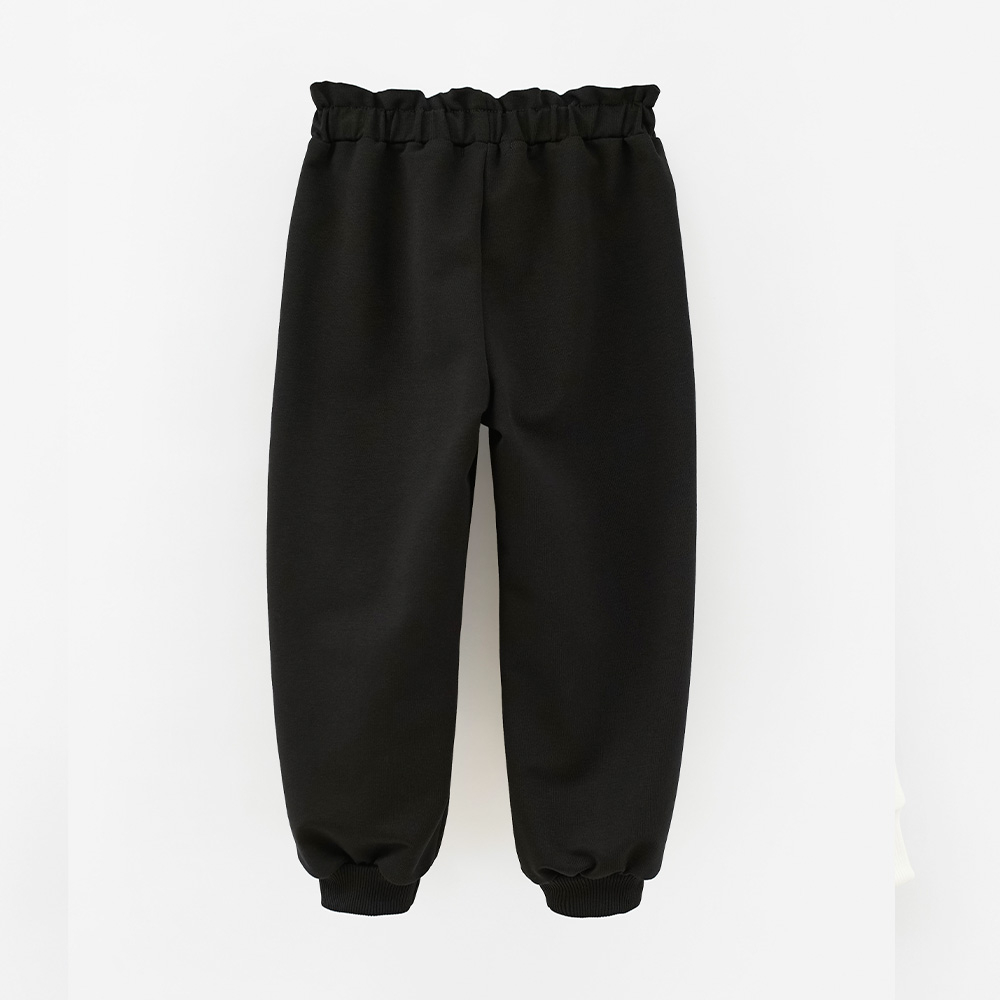 Уютные и лёгкие брюки для девочки, созданные для активных прогулок и игр. Мягкий футер обеспечивает комфорт на каждом шаге, а чёрный цвет делает модель универсальной — легко комбинируется с любым верхом из капсулы. Идеальный выбор для повседневных и стильных образов маленькой модницы.
