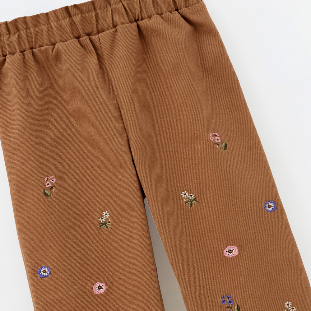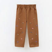Удобные и стильные брюки для девочки с мягким футером внутри и твилом снаружи. Свободный крой и вышивка полевых цветов создают уютный и милый образ. Брюки легко комбинируются с джемперами или футболками из капсулы и подходят для прогулок, игр и ярких фото — комфортно и красиво в любой ситуации.