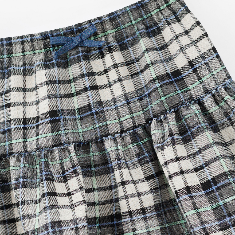 Юбка будто поймала ритм мегаполиса! Лёгкая, но с характером: мягкая фланель создаёт уют, клетчатый узор добавляет динамики, а свободный крой с оборкой делает образ игривым и живым. Универсальная палитра позволит сочетать юбку и с яркими, и со спокойными верхами — для школы, прогулок и маленьких приключений в городе.